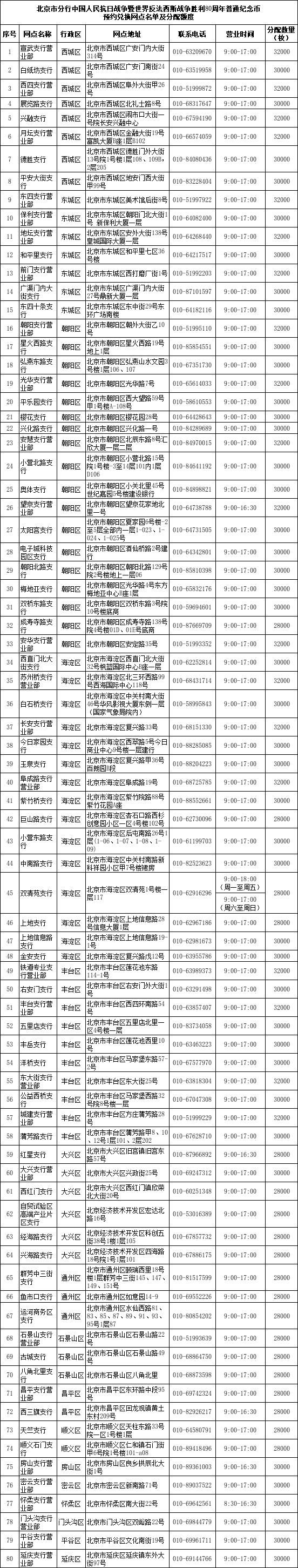 根据中国人民银行的统一安排,我行承担“中国人民抗日战争暨世界反法西斯战争胜利80周年普通纪念币”的预约兑换工作,现就有关事项公示如下: