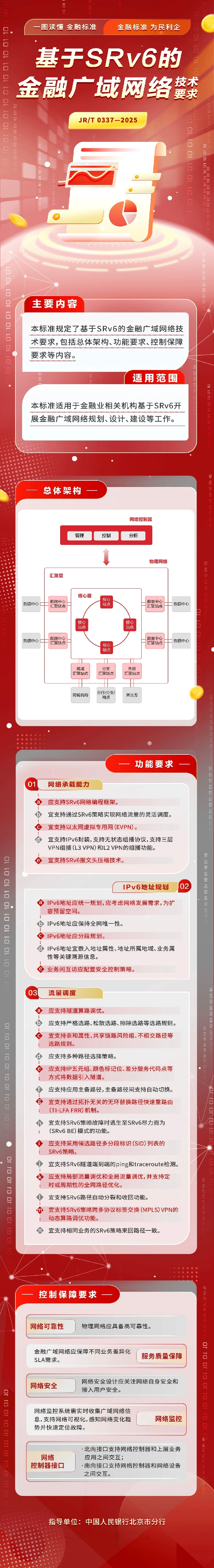 今天推出的是“一图读懂 金融标准”系列第4篇,为大家解读《基于SRv6的金融广域网络技术要求》(JR/T 0337—2025)。