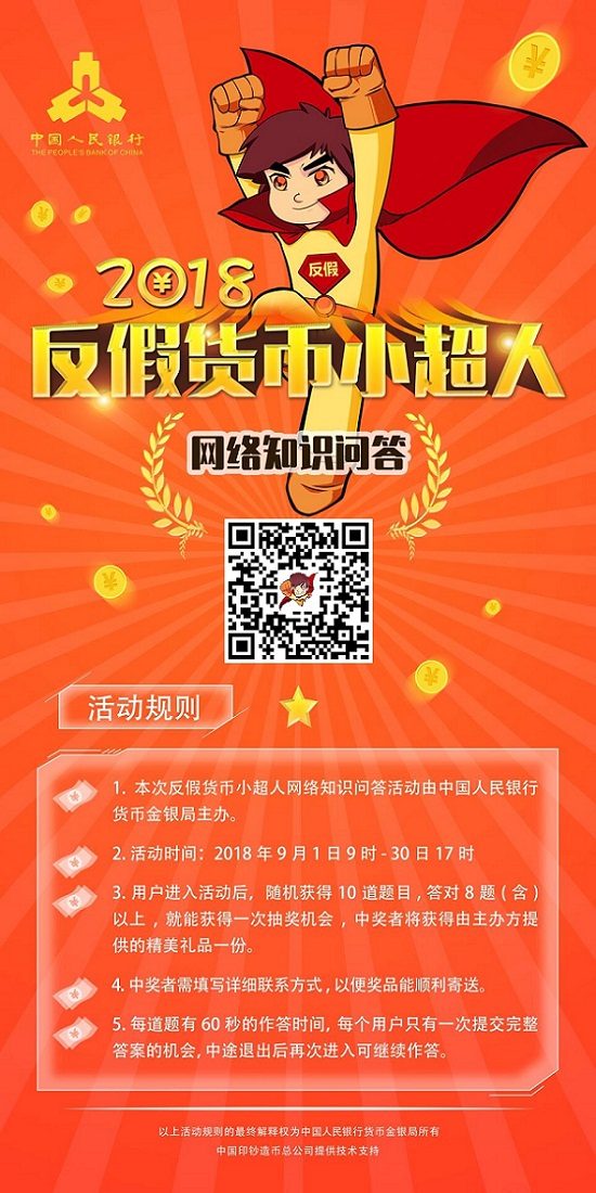 1. 2018年“反假货币小超人”网络知识问答活动规则,内容详见附件1;