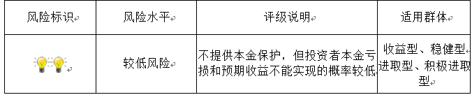 本期产品为非保本浮动收益型理财产品,不保证本金和收益,请您充分认识投资风险,谨慎投资。本期产品期限95天(中国建设银行有权对本期产品进行展期和提前终止),存续期内产品不接受申购或赎回申请。本期产品内部风险评级级别为2盏警示灯 ,风险程度属于较低风险。最不利情况下,资产组合无法回收任何本金和净收益,客户将损失全部本金。产品适合于收益型、稳健型、进取型、积极进取型客户。